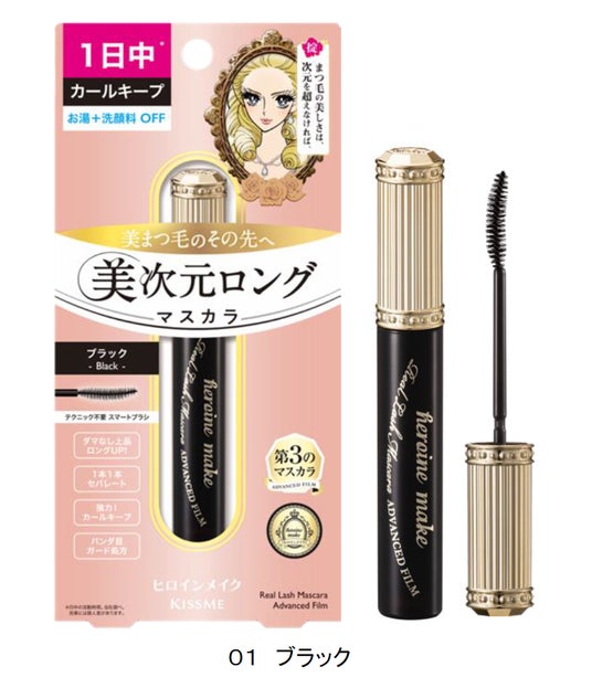 ヒロインメイク リアルラッシュマスカラ アドバンストフィルム 全1色 6g ¥1,400(税込¥1,540)大人気のヒロインメイクのマスカラシリーズに、待望の新作「美次元ロングマスカラ」が仲間入り!独自開発のロングEXファイバーを配合し、まるで自まつ毛が伸びたかのような自然で美しい、ダマのないキレイなロングUPまつ毛を叶えます。