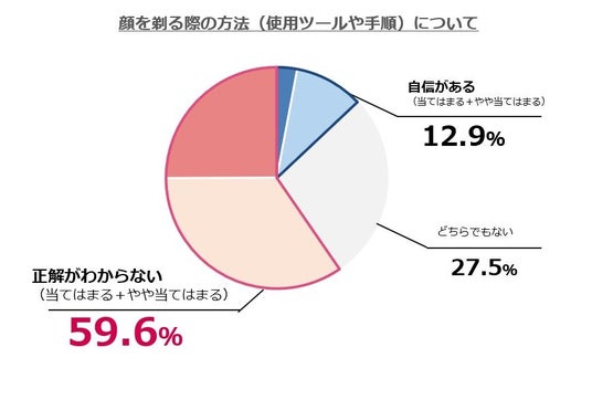美容目的で顔そりをしている人に、顔を剃る際の正しい方法について質問したところ、「シェービング方法の正解が分からない」と答えた方が約6割※⁶にも上っています。