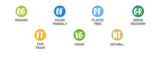 Ethical&SEAのどの商品がどんなエシカル消費に繋がっているのかを、わかりやすくアイコンで表記し、一目で判別できるようにしています。
