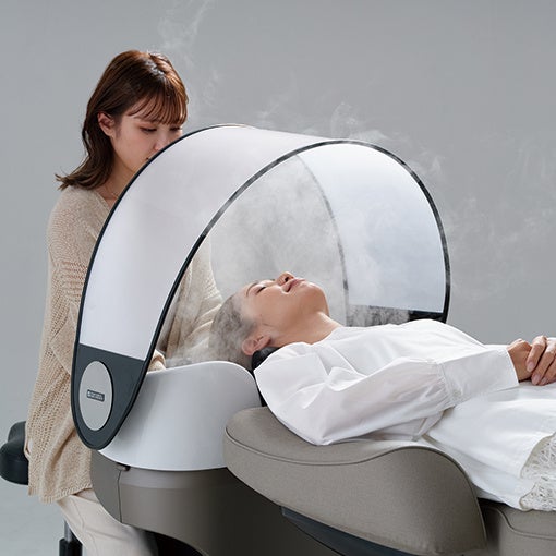 周囲を気にせず、至福の時間を提供。ボウルの上部を覆うことで周囲の視線を遮り、施術時のプライベート性を高めます。さらに、ミストの滞留を促すことで、ミストの温かさに包み込まれる心地よいリラックスタイムを提供します。