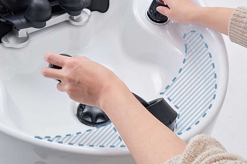 ボウル内にフラットなスペースをもうけました。小物やケア剤などを置くことができ、施術効率が向上します。