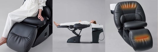 従来製品より背もたれを40mm伸ばし、ネックデバイスとの隙間を限りなく少なくすることで、サポート力が向上。さらに、レッグレストの角度が0度になったことで、お客さまがリラックスしながら快適に施術を受けられるフルフラット姿勢を実現します。