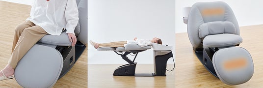 従来製品より背もたれを25mm伸ばし、ネックデバイスとの隙間を限りなく少なくすることで、サポート力が向上。また、レッグレストの角度と長さを追求し、高身長の方でものびやかに全身をあずけてリラックスすることができます。