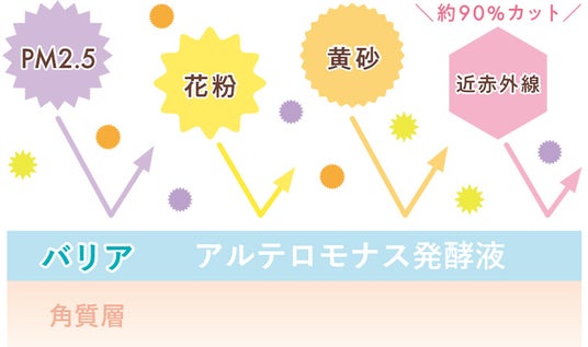 お肌を守るさまざまな環境ダメージ※や、PM2.5、花粉などの外的要因による乾燥ダメージから肌を守る、アルテロモナス発酵エキスを配合。さらに近赤外線を約90%カット!日々、過酷な環境にさらされ続ける肌をメイクすることで、穏やかに整えます。