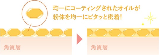 ひと塗りでカバーパウダーに、肌なじみのよいオイルを均一にコーティング!粉感がなくしっとりしていて、肌にピタッと密着し、肌の凸凹や色むらをひと塗りでカバー。重ねて塗っても、厚塗りにならない美しい仕上がりが続きます。