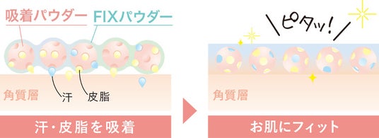 時間が経っても崩れないハイブリッド型吸着パウダー※をセフィーヌ独自のバランスで配合。汗・皮脂をすばやく吸収・吸着!メイクの「ドロっと崩れ」を防ぎ、ピタッとお肌にフィットします。