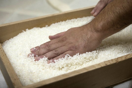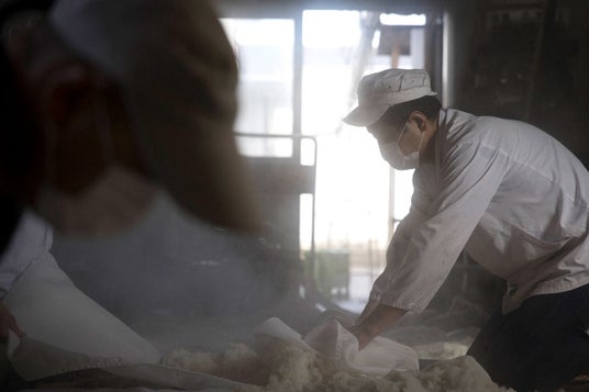麹菌を混ぜて寝かしたお米を触っている様子