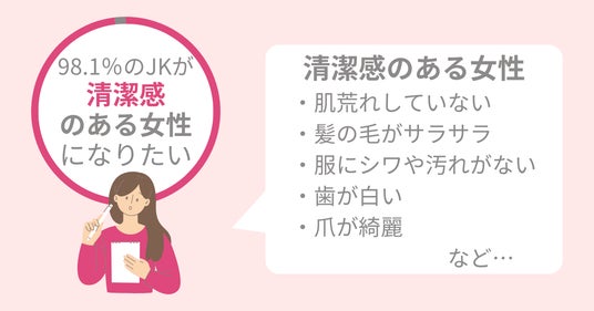 株式会社アースケアは16~18歳の女子学生100名に「清潔感」に関する調査を行いました。<調査結果>98.1%の女子高校生が「清潔感のある女性」になりたい