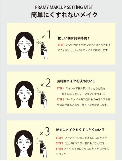 PRAMYマットタイプ『PRAMY メイクアップセッティングミスト』は海外で2秒に1本売れる人気商品。これまでにシリーズ累計出荷本数は1500万本を突破している実力派商品だ。プッシュするだけでメイクをキープできる手軽さと、軽やかな付け心地が評判を呼んでいる。