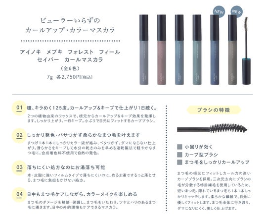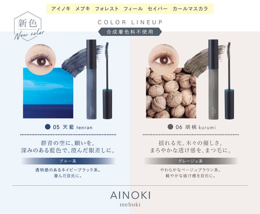 化粧品製造・販売をおこなうジャプロ株式会社(東京本社:東京都中央区日本橋小舟町8-6 H1O日本橋小舟町606)が展開する国産ヴィーガン、ナチュラルオーガニックコスメブランド「AINOKI mebuki(アイノキメブキ)」より、発売開始から半年で累計販売本数1万本を突破したカラーマスカラの新色2色の販売を開始いたします。( https://ainoki.net/)