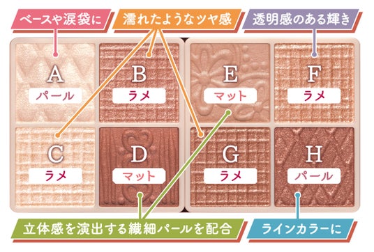 異なる質感でメイクがもっと楽しくなる(ハート) マット・パール・ラメなどの8色をセット