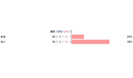 ──────────────────────────────今回のアンケートで「医療機関や脱毛サロンでVIO脱毛をしたことはありますか?」とアンケート調査をした結果、1位は『ない』でした。次に「脱毛の効果を教えてください」の回答の1位は『かなり毛量が減った』でした。また、「VIO脱毛への満足度について教えてください」の回答の1位は『まあまあ満足している』でした。