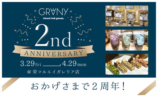 一般社団法人日本福祉協議機構(本社:愛知県名古屋市天白区井の森町)が運営する、障がい者就労支援B型×自然派グラノーラ専門バルクショップGRANY栄マルエイガレリア店(https://grany-shop.com/)は開店2周年を迎えました。2022年3月にオープンして以来、皆さまの温かい応援をいただき、地域との絆を大切に本日にいたるまで社会課題の解決に向けて取り組むことができました。