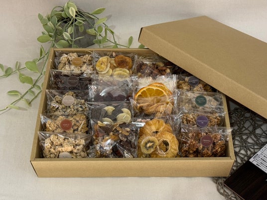 グラノーラのプロが厳選。体の悩みに合わせて素材を選んでミックスできるグラノーラのブレンドセットです。美味しく食べて毎日を健康に過ごすための栄養いっぱいのベース・グラノーラとナッツ・フルーツなどのトッピングの詰め合わせです。