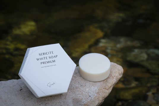 そこで、東栄町産セリサイトを贅沢に配合したシンプルプラスならではのフェイシャルソープ作りに取り組み、完成したのが「SERICITE WHITE SOAP PREMIUM」です。
