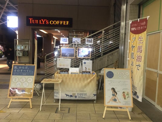 最初は、駅の中でのワゴン販売からスタートしました。しかし当時は馬油というと、おばあちゃんの化粧戸棚にある古臭いなにかといったイメージ。足を止めていただける方も少なく苦戦しました。