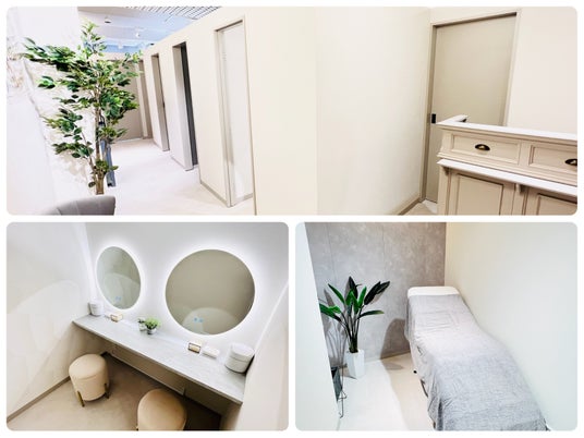 店内は白色を基調としたシンプルかつナチュラルなデザインでまとめられており、ゆったり落ち着いた空間が広がります。施術を行う個室も、ゆとりのあるスペースの中に清潔感のあるインテリアを施しております。
