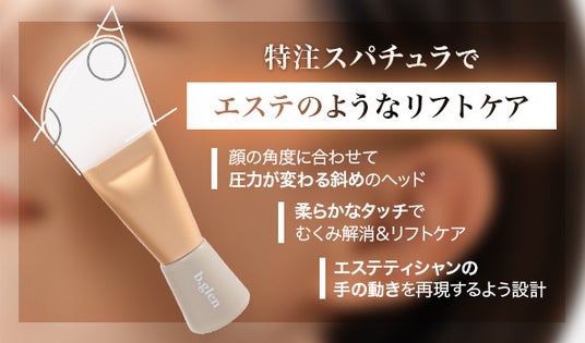 クリームを塗布する付属のスパチュラも、細部まで緻密に設計された独自開発品。肌に触れたときの心地良さと引き上げ効果を追及しました。