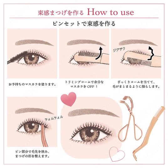 カーラーはポイントタイプで使い勝手がよく、目頭、目尻、下まつげも根元からしっかりと立ち上げられます。「梳かす・束ねる・挟む」の機能をひとつにまとめた便利なピンセットは、ステンレス製なので汚れてもお手入れがしやすく衛生的です。可愛いピンクゴールドカラーもポイント♪