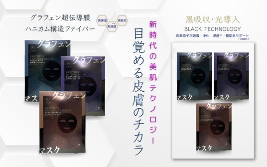 日本では珍しい超伝導膜(※1)“グラフェン”&ハニカム構造(※2)ファイバーを採用。クラシカルブラックマスクに比べて炭素原子の含有量もUPしワンランク上のフェイシャルケアをご体験いただけます。