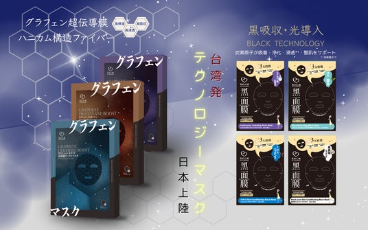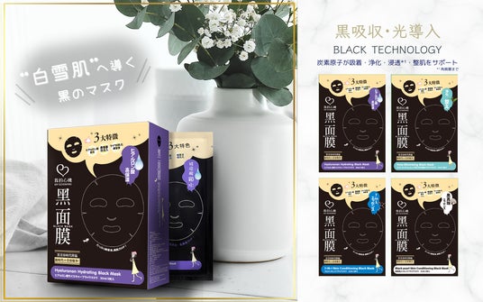 炭素原子が練りこまれた不織布が毛穴汚れを吸着しながら美容成分を肌に与えていく新感覚マスクです。全種類ヒアルロン酸ナトリウムをたっぷり配合しており、保湿と水分ストックにこだわっています。数あるバリエーションの中から日本市場で人気の出そうな4SKUを優先して展開いたします。