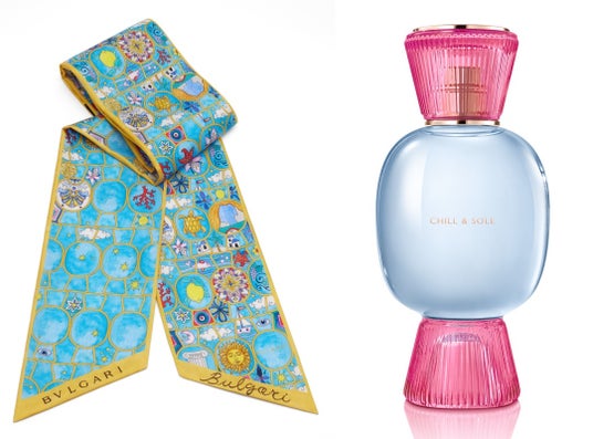 気分にあわせてファッションを選ぶように、フレグランスも楽しむ。「ブルカリ」のフレグランスと、モード派の装いを完成させる“シェリー”が登場。ヴィヴィッドでファッショナブルな柄のエレガントな素材のスカーフ。「ブルガリ」でフレグランスとシェリーを同じスペースでコーディネートして販売するイベントは、国内初。