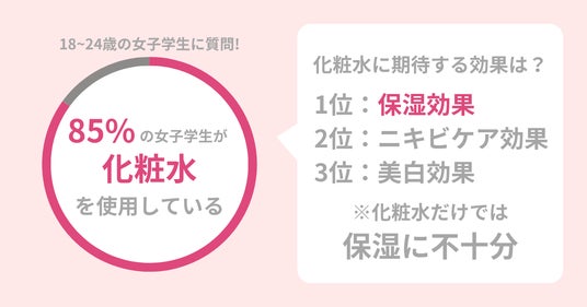 株式会社アースケアは18~24歳の女子学生100名に「化粧水」に関する調査を行いました