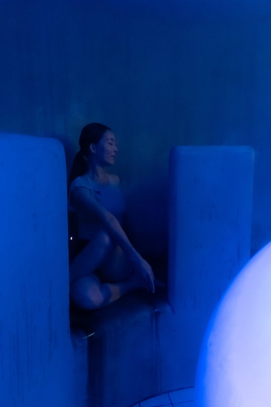 瞑想と瞑想の間には、リラクシングエリアでクールダウンしながら瞑想の意図をレクチャー。約90分~120分間のセッションの後には、ご自由にスチームサウナにお入りいただけます。パウダールームでもゆったりお過ごしいただける合計3時間の贅沢なプログラムです。(水着着用)