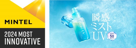 花王の『ビオレUV アクアリッチ アクアプロテクトミスト』(通称:瞬感ミストUV)は、株式会社ミンテルジャパンの「MINTEL’S MOST INNOVATIVE 2024 -ミンテルが選ぶ最も革新的な新商品:2024-」にて「美容・化粧品/家庭用品編」の部門に選出されました。本商品は、2023年2月に全国発売を開始してからの累計出荷数量*1 が880万本を突破し、2024年も引き続き多くのお客さまにご好評をいただいています。