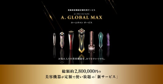 本サービスは、上質なホームエステ体験で“美の可能性を最大限にもたらす”ことを目指した「ホームエステ・サブスク構想」により、プレ・プランとして開始した「ホームエステ・3か月レンタルプラン」を経て誕生いたしました。これまでの‘選んだ美容機器1台のみ、3カ月レンタル可能’なサービスから進化し、新たに“総額約280万円の中からお好きな美容機器がいつでも好きな時に傍にある”「美の充実・ホームエステ生活」を、「A. GLOBAL MAX」ホームサロンサービスとしてスタートしてまいります。