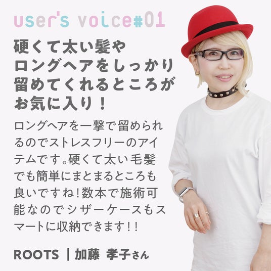 ・大きいセクションを取っても、髪の重さに負けずホールドできるため、多毛でもしっかりキャッチして留められる。