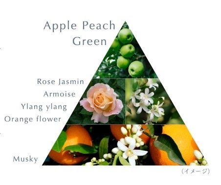 軽やかで爽やかな花々が香るフレッシュブーケの香りです。トップにはみずみずしく軽やかなグリーンフルーティの香り。ミドルノートには上品さのあるローズやジャスミン、イランイランに爽やかなオレンジフラワー、アルモアズを組み合わせたフレッシュブーケ。ラストノートには穏やかでやわらかなムスクが香ります。