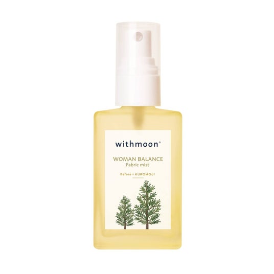ファブリックミストは、withmoonのブランドコンセプトでもあるウーマンバランスを意識して、ブルーになりやすい生理前の時期を中心に癒しの香りでリラックスしてもらえるようなアイテムです。生理周期の特に生理前に合わせて使うイメージのアロマオイル「withmoon エッセンシャルオイル Before」の柑橘系をベースに作られています。また、リラックス効果として注目されている芳香成分「リナロール」が含まれているという京都産のクロモジをブレンドしています。