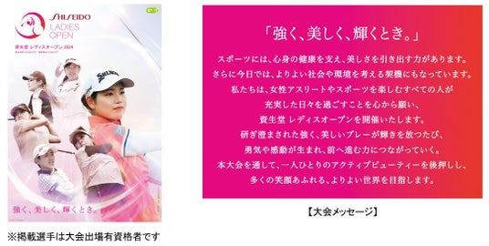 メインビジュアルには、昨年の「資生堂 レディスオープン」で選手たちが魅せてくれた躍動する姿を採用し、大会テーマ「強く、美しく、輝くとき。」を表現しました。