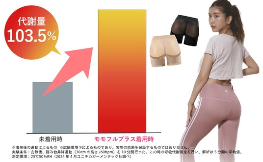 代謝が上がることが証明されました:モモフルプラスは、試験機関によって運動中に着用することで代謝が向上することが実証されました。ダイエットが続かない、面倒くさいと感じる人にとって、モモフルプラスは間違いなく救世主となるでしょう。