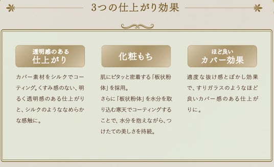 ● ファンデーションを優しくフィットさせ、つけたての美しさを持続します。