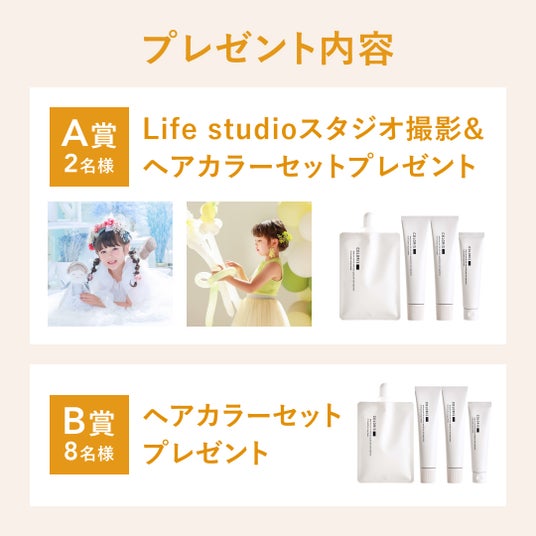A賞:ライフスタジオ撮影券+カラリスヘアカラーセット(2名様)