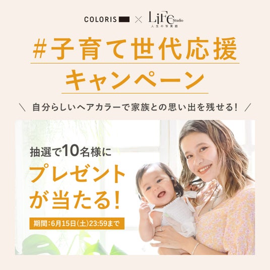 株式会社ストークメディエーション(本社:東京都渋谷区)が展開するパーソナライズヘアカラーブランド「COLORIS(以下 カラリス)」は、株式会社アップルツリーファクトリー(本社:埼玉県春日部市)が運営するフォトスタジオ「人生の写真館 ライフスタジオ(以下 ライフスタジオ)」とのコラボレーション企画を実施いたします。今回のコラボにより、初めてライフスタジオを利用する方にカラリスのカラーセットをプレゼントいたします。ご家族の大切な記念日を、綺麗な髪色でお迎えください。
