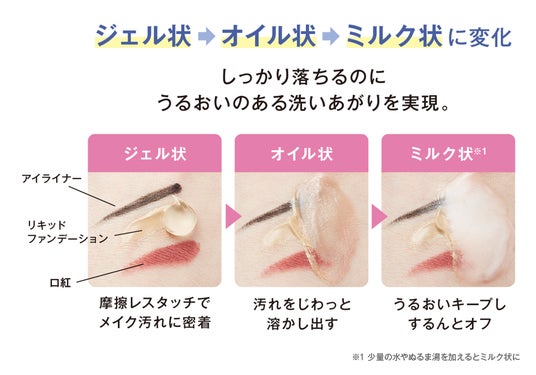 Point1 ジェル状・オイル状・ミルク状の三変化でしっかり“うる落ち”