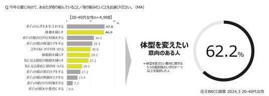 ●20-40代一般女性の62.2%が、今年の夏に向けて現在の体型を変えたい意向あり。
