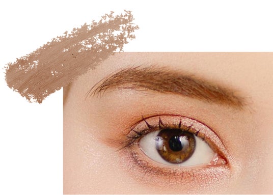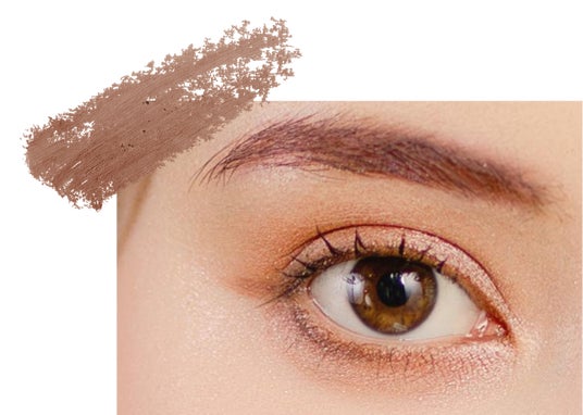 眉だけでなく目元にも使用して、統一感のあるメイクが完成
