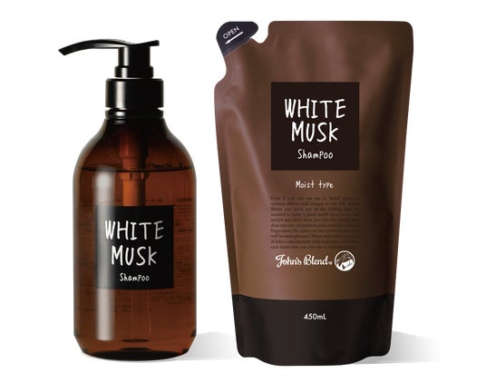 John’s Blend自慢のホワイトムスクの香りをたっぷりと配合した”フレグランス”シャンプー&コンディショナーで、毎日のヘアケア習慣をいつまでも心地よく。