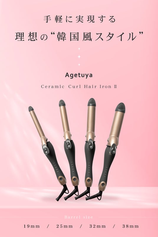 Agetuyaカールヘアアイロン2/38mm(税込4,378円)韓国風のゆるふわ立体カールを作ることができる38mmのカールヘアアイロンです。