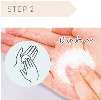 噴射された泡を手で軽く押すと、コットン状に変化します。