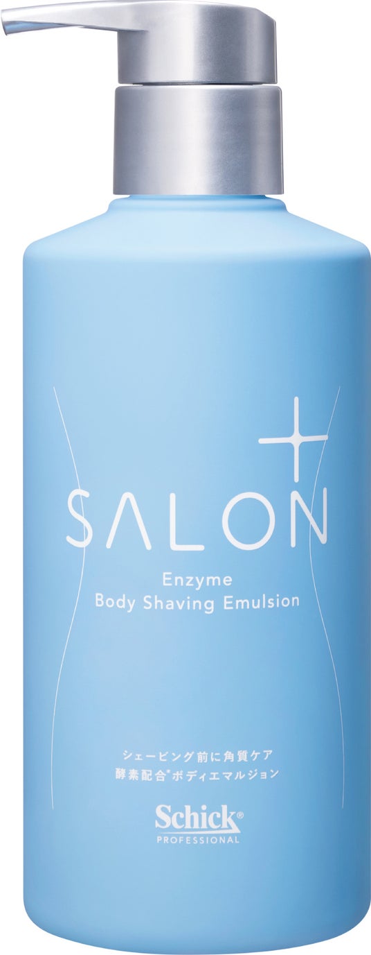 サロン仕上げのような肌に導くために、「サロンプラス」から同日発売する「サロンプラス エンザイム ボディ シェービングエマルジョン」は、2種類の酵素※1を配合し、肌と毛を柔らかくすることで、シェービング時の角質除去※4もサポートするシェービング剤です。「サロンプラス トーンアップ ボディシェーバー」との併せ使いで透明感※2のある素肌へ導きます。