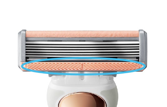 刃を6枚にすることで、刃が肌に均一に密着し、少ないストロークでしっかり体毛を剃ることができます。古い角質も除去します。