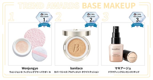 コスメ部門では、いずれも肌色を引き立てる絶妙なくすみカラーが注目を集めていることから、淡色人気はしばらく続きそう。ベースメイク部門では、リニューアルした人気フェイスパウダーがSNSでの大きな反響を受け1位を獲得。