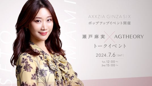 「AXXZIA GINZA SIX POP UP ショップ」では、2024年7月6日(土)限定で、美容家・瀬戸麻実さんによる「瀬戸麻実×AGTHEORYトークイベント」を開催いたします。「瀬戸麻実×AGTHEORYトークイベント」では、マミ様流「内外ケア」と、糖花パワー*¹で作る「ツヤ肌レシピ」のレクチャーのほか、累計150万箱*²を販売する美容ドリンク「エイジーセオリー AGドリンクX」のご試飲など、SPECIALな時間をご提供いたします。