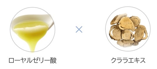 「ローヤルゼリー酸」、「クララエキス」が敏感な大人の肌をやさしく整えます。