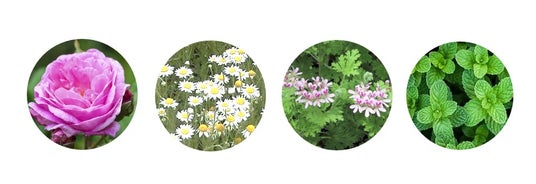 ローズウォーター、カミツレウォーター、ローズゼラニウムウォーター、セイヨウハッカエキスのさわやかなフローラルハーブの香り。